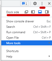 You might chose your desired mode for displaying the Dev Tools window – horizontally or vertically. You can find this option by clicking the three dots on the upper right corner of the development window and selecting the dock side. If this window is already displayed in your desired way, skip this step.